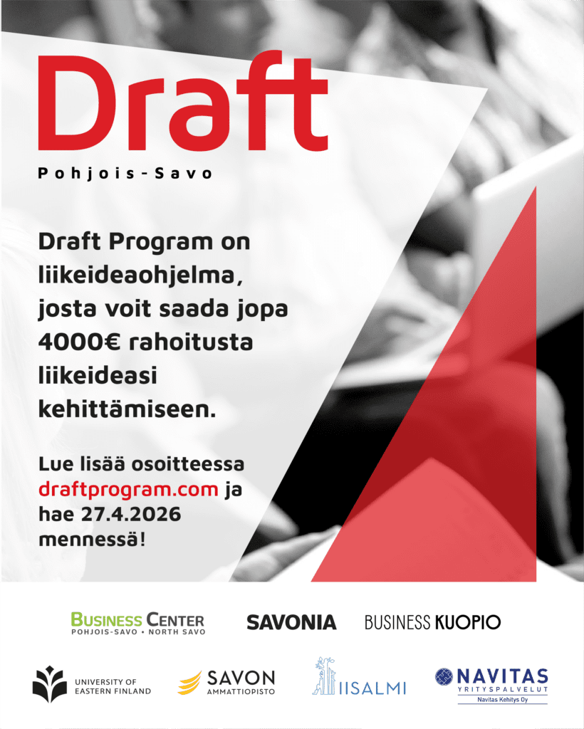 Liian moni hyväkin liikeidea jää pöytälaatikkoon. Ei siksi, etteikö potentiaalia olisi vaan siksi, että ideoita ei testata riittävän nopeasti, kaupallistamiseen ei ole riittävää tukea ja alkuvaiheen resurssit puuttuvat. Tämä on tunnistettu haaste myös Pohjois-Savossa. Ja siksi Draft Program on olemassa. Pohjois-Savossa on nyt haku auki ohjelmaan, jossa fokus ei ole ideoinnissa, vaan siinä että liikeideasta […]